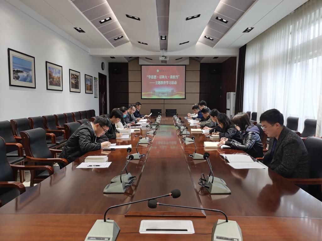 会上,党支部启动了“学思想·话科大·谈担当”主题教育学习活动。那丽洁、孙彬斌、申展分别结合学习贯彻习近平新时代中国特色社会主义思想主题教育,从“‘扎实推进依法行政,发挥自身在学校法治工作建设中的主动作用”“发挥教育科技人才的基础性战略性支撑作用 人事档案工作创新助力学校人才工作发展”“深化新时代枫桥经验 构建信访工作新格局”三个方面作发言。随后,姜杰领学了学习贯彻习近平新时代中国特色社会主义思想主题教育工作会议精神和习近平总书记重要讲话精神及全省学习贯彻习近平新时代中国特色社会主义思想主题教育工作会议精神。陈振源传达了学校党建例会精神。“读看思研”活动中,王霞领学了《习近平新时代中国特色社会主义思想专题摘编——不断提高政治判断力、政治领悟力、政治执行力。