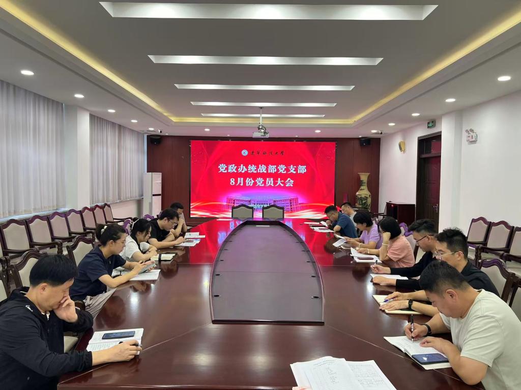8月29日上午,党政办统战部党支部在校部120(东)会议室召开党员大会,开展集体学习。党支部书记李宁主持会议。