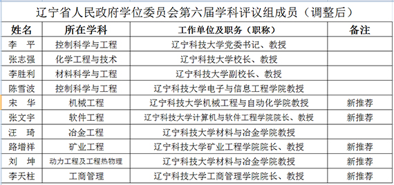 8月2日,从辽宁省人民政府学位委员会《关于调整第六届省学科评议组组成人员的通知》(辽学位〔2021〕6号)和辽宁省人民政府学位委员会 辽宁省教育厅《关于调整辽宁省专业学位研究生教育指导委员会组成人员的通知》(辽学位〔2021〕7号)获悉,九游在线官网_九游(中国)12位教授被聘为辽宁省第六届学科评议组成员和专业学位研究生教育指导委员会成员,其中学科评议组成员10人(新增5人),专业学位研究生教指委成员2人(新增1人)。