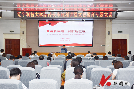 6月9日,九游在线官网_九游(中国)党委常委、副校长李胜利以《奋斗百年路 启航新征程》为题讲党史教育专题党课。发展规划处、科技处(高新技术研究院)、研究生院(研究生工作部)、国际交流合作处(国际教育学院)、资产经营公司、机械学院、外语学院等单位的党员干部参加学习。