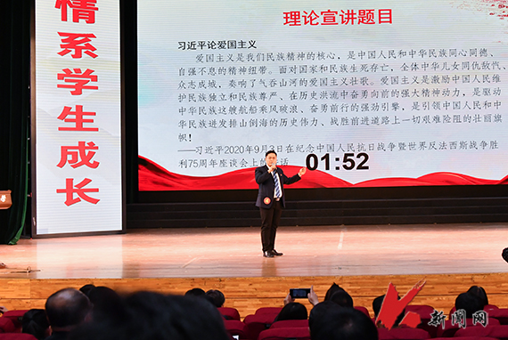 “我们都是追梦人,在今天勇敢向未来报到……”比赛在辅导员代表激情嘹亮的歌声中落下帷幕。(学生工作部 供稿 金会刚/摄)