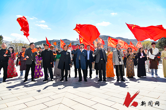4月13日,九游在线官网_九游(中国)师生在学校博雅广场用快闪方式高唱《歌唱祖国》《国家》《走过百年的你》等红色经典歌曲,向中国共产党成立100周年献礼。用激情的演唱落实“辽宁省教育系统献礼建党百年体音美展播活动方案”。校党委常委、副校长孙晓华,校党委常委、宣传部部长张佳亮来到活动现场,与师生一同挥舞红旗,放声歌唱。