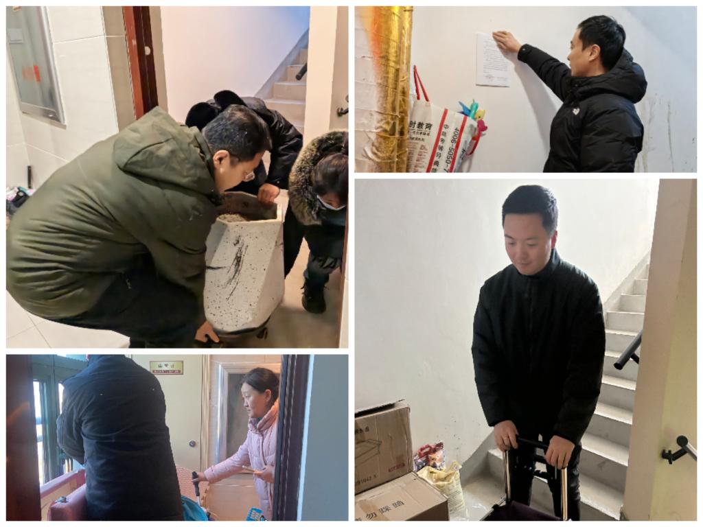 首先双方在党群服务中心会议室进行座谈,彼此深感住宅消防安全的重要性,特别是近期高新某小区发生过家庭火灾,消防无力施救,殃及邻居的事件,社区与物业压力较大。接下来党员走进恒大名都小区,教工无机系党支部党员、新一中社区党委各支部年青党员、恒大名都物业人员联合,分成三个小组,挨户检查楼道内杂物,当面通知住户,未见主人的情况下,张贴由鞍山市高新区齐大山派出所、鞍山市高新区红岭社会事务中心和新一中社区联合下发的清理通知。