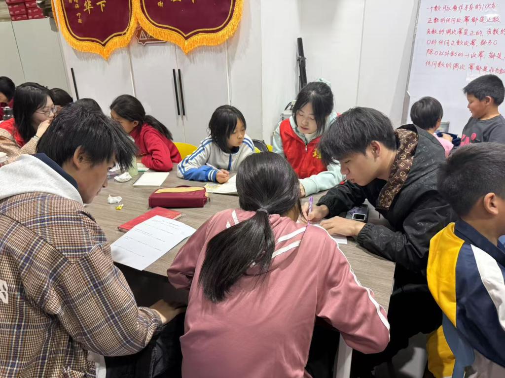 活动中,工作室教师与柏剑深入交流,探讨后续帮扶计划。学生党员为孩子们分发水果、学习用品,并耐心辅导孩子们完成日常作业。孩子们集体背诵《少年中国说》《大学》,展现了传统文化传承的力量。