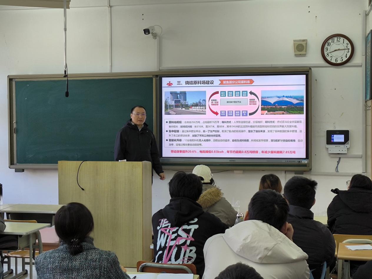 “同学们好,这是鞍钢鲅鱼圈405 m²烧结机,今天的《炼铁学》课就从这里开始。”10月28日早8:00,材料与冶金学院“工程师进课堂”系列活动迎来第二位企业导师——鞍钢集团烧结领域首席专家、教授级高级工程师刘杰,为2023级2班冶金工程专业本科生讲授《炼铁学》校企共建模块《鞍钢股份烧结技术的研究与实践》。