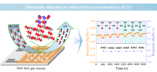 该团队利用NiO-TiO2复合材料实现了H2和CO共存条件下的H2超高气敏选择性检测,并彻底消除了CO的交叉敏感现象。此研究为全面改善金属氧化物半导体气体传感器选择性差的问题提供了一种有效的解决方法。