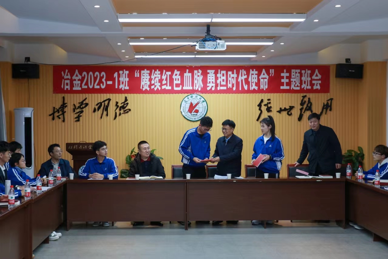 11月27日下午,材料与冶金学院冶金工程2023-1班召开“赓续红色血脉 勇担时代使命”主题班会,校党委书记李平应邀出席班会,学校党政办公室主任李宁、材料与冶金学院班子成员、辅导员与班级全体同学一同参加班会。