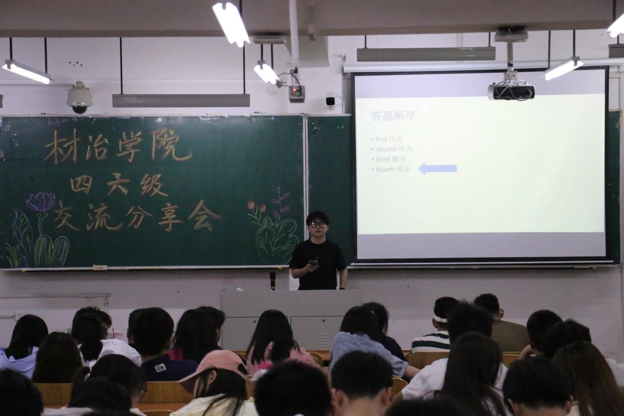 学院组织部分高分通过英语四级的同学分享复习经验及心得体会。同学们从考试时间,备考策略,答题技巧,及题型包括听力,阅读,写作,翻译等多方面进行交流,通过陈波,李昊阳,娄景惠,刘俊彦,霍培尧五位同学的经验分享,给即将参加四六级考试的同学们提供了宝贵的学习经验。