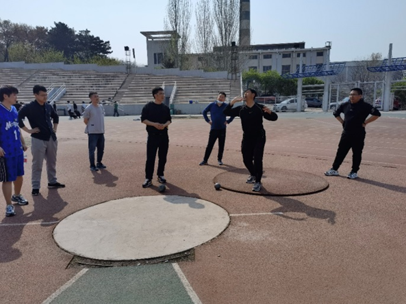 赛场上,各位老师以良好的精神风貌参与铅球和跳远比赛中,互相切磋技巧,体育部的相关张海军老师也认真给予了技术指导,达到了选拔队员的目的。