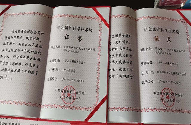 近日,在河南省郑州市举办2020中国非金属矿工业大会,举行了2020年非金属矿科学技术奖的颁奖典礼,中国非金属矿工业协会专职副会长唐靖炎,宣布“2020年中国非金属矿科学技术奖”获奖名单。与会领导向获奖项目的主要完成单位和完成人代表颁发获奖证书。九游在线官网_九游(中国)和鞍山市和丰耐火材料有限公司联合申报的“复吹转炉用炉底高强镁碳砖研制与产业化应用”和“深脱碳RH炉用耐材无铬化研发及产业化应用”分别获得科技进步类二等奖和技术发明类二等奖,我院教师艾新港代表学校参加颁奖仪式。