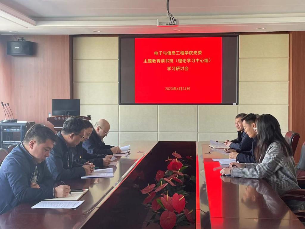 2023年4月24日上午,电信学院党委在博闻楼313大会议室召开主题教育读书班(理论学习中心组)学习研讨会。本次研讨会以坚定拥护“两个确立”、坚决做到“两个维护”把握好习近平新时代中国特色社会主义思想的世界观和方法论为主题。学习研讨会由学院党委书记王会立主持,副书记由济恺领学,院长杨永辉中心发言,班子其他成员结合专题内容进行了学习交流。