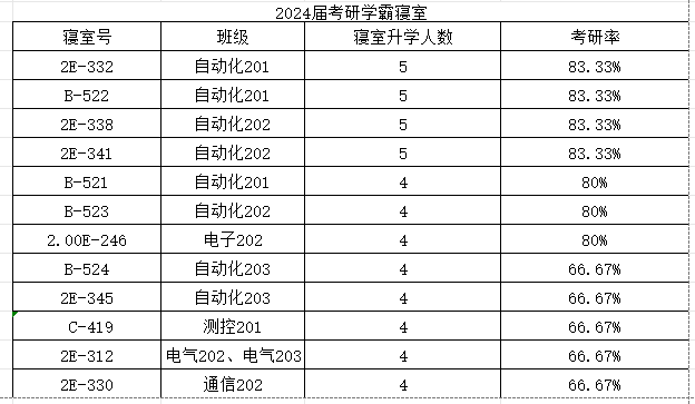 2024年全国硕士研究生录取工作落下帷幕,电信学院2024届学生考研成绩捷报频传。2020级毕业生共568人,其中160人考取硕士研究生,上线录取率再创新高,达到28.17%,比去年增加8.55%。考取985、211名校36人,占全部录取人数的22.5%。涌现“学霸专业”自动化考研率43.87%,“学霸考研班”2个,自动化201考研率55%,自动化202考研率54%。