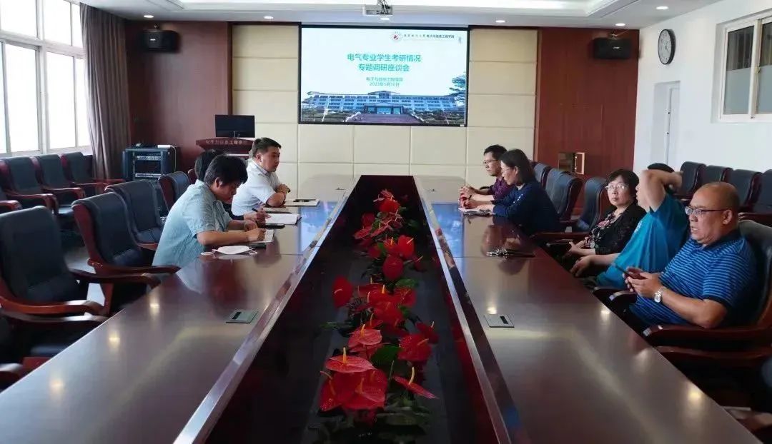 为进一步提高我院电气系学生考研热情,明确考研方向和目标,全面扎实推进本科生考研工作,5月16日,电气系学生考研情况专题调研座谈会于博闻楼313会议室举行。会议由电信学院党委副书记由济恺主持,电气系教师、辅导员参加。