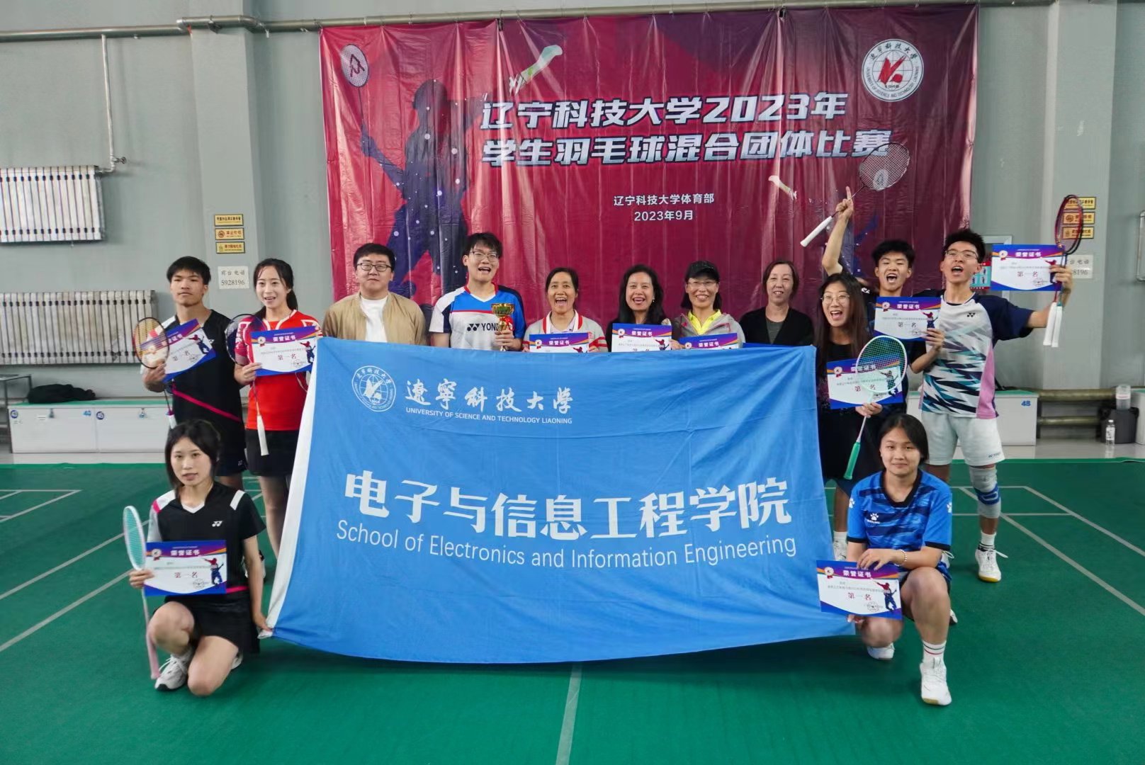 10月11日,电信学院羽毛球队在九游在线官网_九游(中国)举办的2023年学生羽毛球混合团体比赛中以总比分3:2击败机械学院代表队,一举夺得冠军。