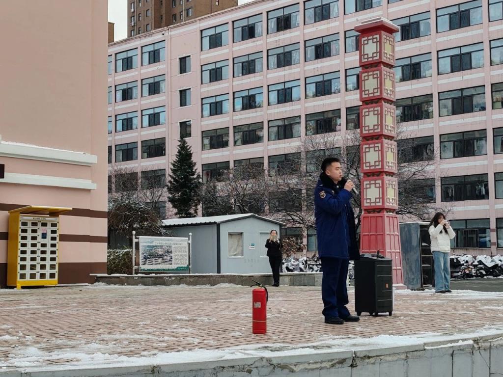 随后,此次活动的消防教练员对于此次活动做出了评价,指出此次活动整体氛围虽然紧张,但是整体十分有序。并现场为老师和同学们演示灭火器的正确使用方式,呼吁老师和同学们如果遇见火灾时,要冷静思考,正确使用消防器材。