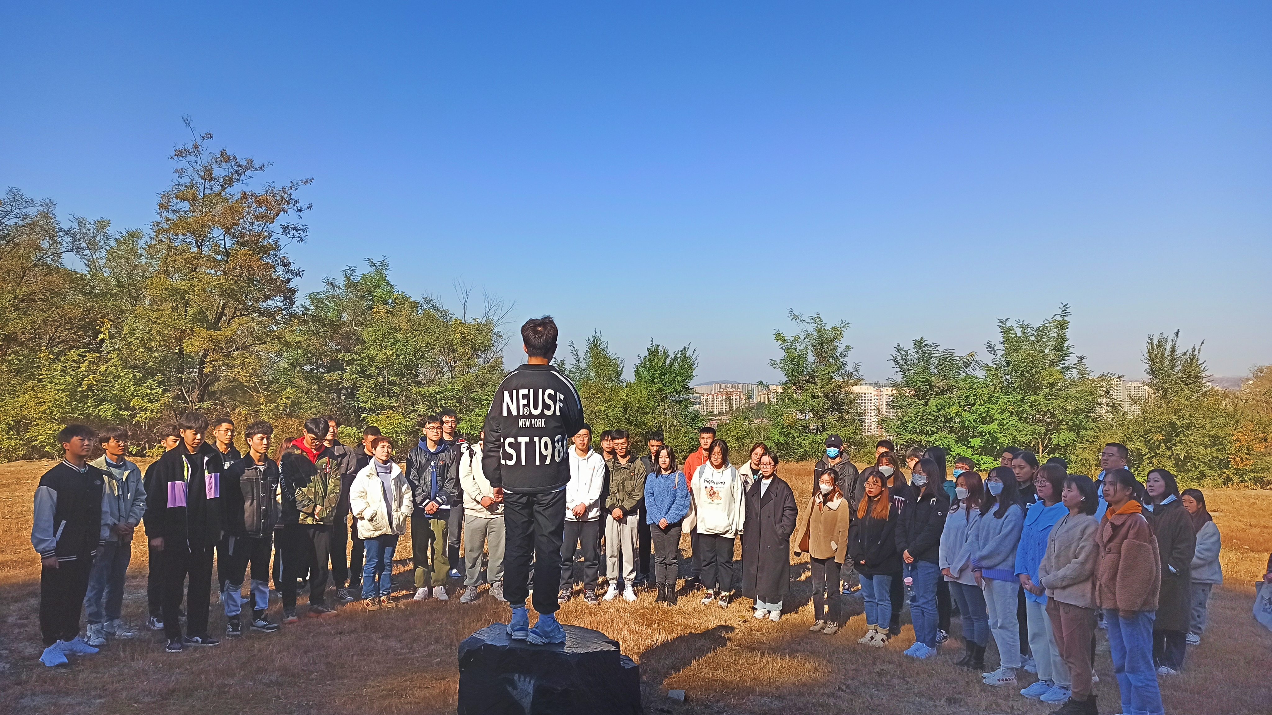 到了半山平坦处,李懿轩同学站在大石上,在同学们的环簇中将社会主义革命和建设时期的历史事件娓娓道来,大家听得意犹未尽,效果也成倍呈现。支部党员原地进行了交流研讨,纷纷表示要把革命先辈们的信仰信念、崇高理想、党性观念、无私奉献精神传承下去。学生测控党支部通过主题党日、集体学习、集中研讨等多种活动形式,在支部上下形成了党史“人人学、人人讲、人人受教育”的火热氛围。