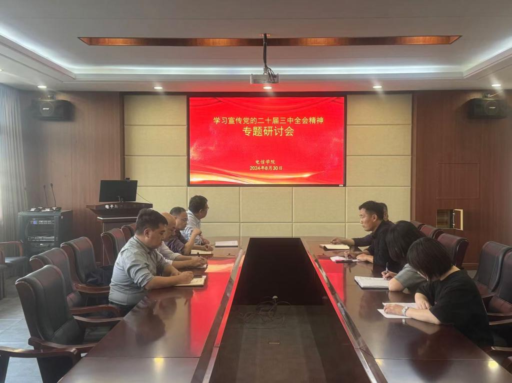 2024年8月30日上午,电信学院党委理论学习中心组在博闻楼313会议室召开(扩大)会议,会议由学院党委书记王会立主持,学院领导班子、科级以上干部参会。