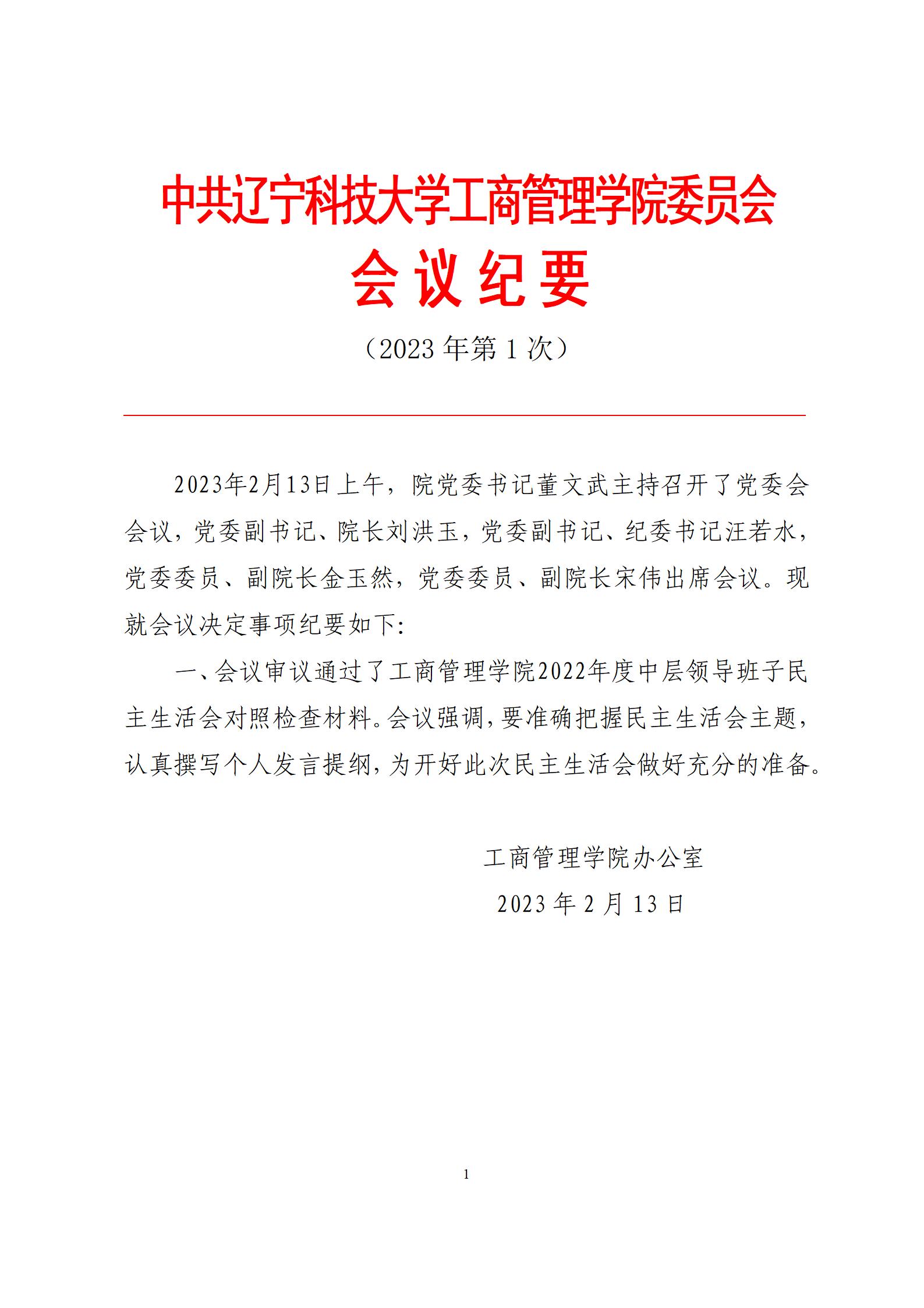 中共九游在线官网_九游(中国)工商管理学院委员会会议纪要(2023年第1次)