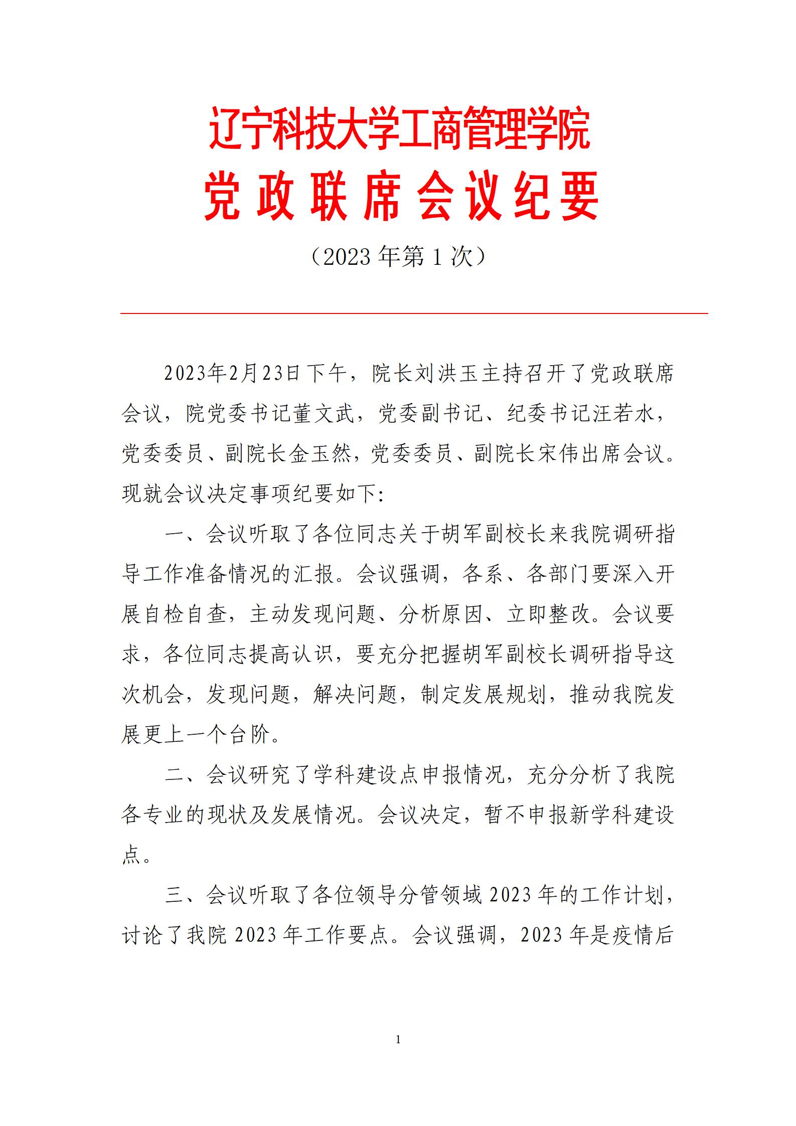 九游在线官网_九游(中国)工商管理学院党政联席会议纪要(2023年第1次)