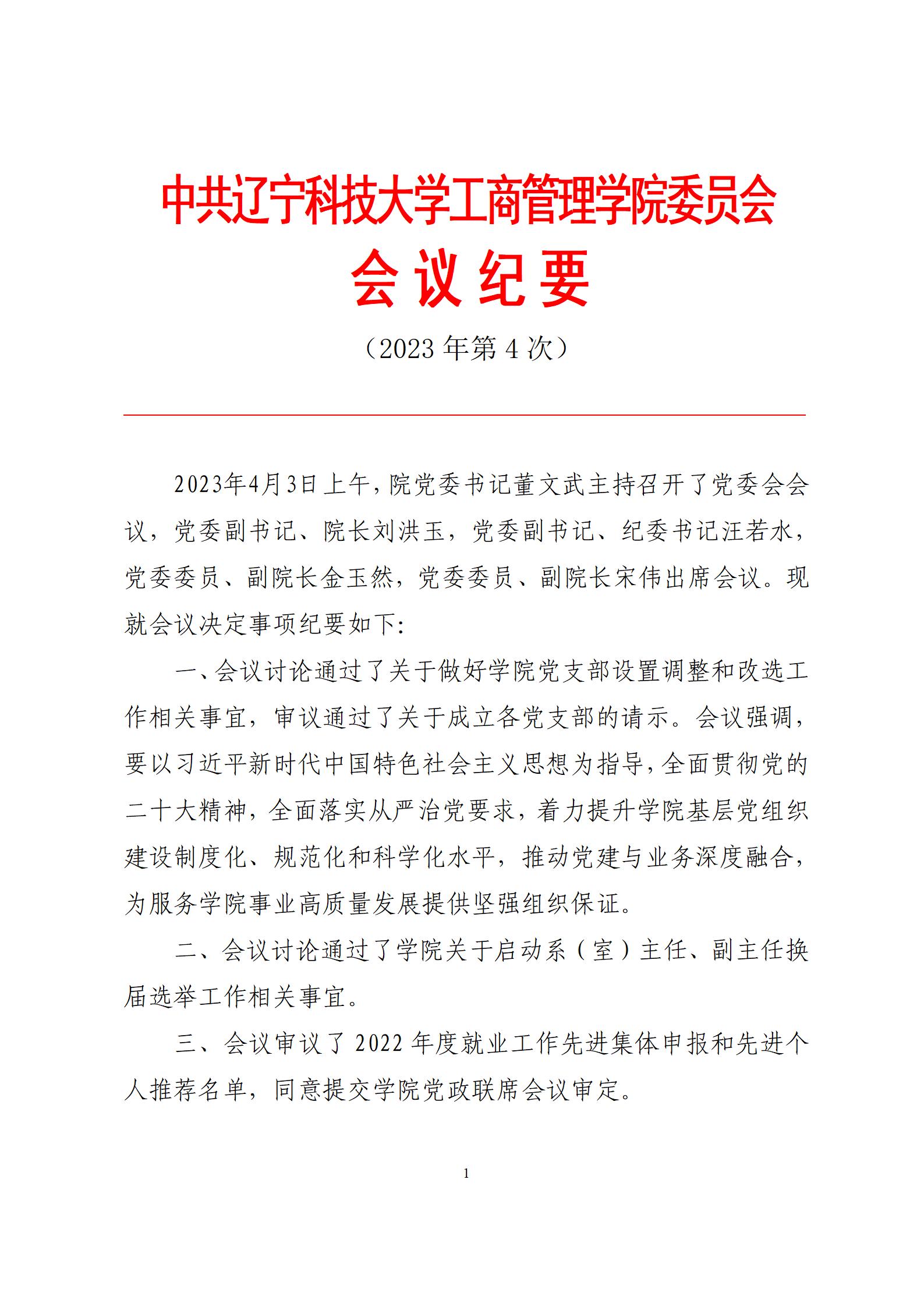 中共九游在线官网_九游(中国)工商管理学院委员会会议纪要(2023年第4次)