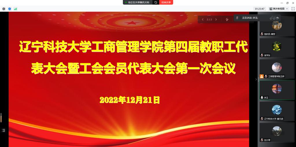 12月21日下午,工商管理学院在腾讯会议召开了第四届教职工代表大会暨工会会员代表大会第一次会议,校工会张晓松副主席出席,学院全体教职工参与了会议,会议由工商管理学院党委书记董文武主持。