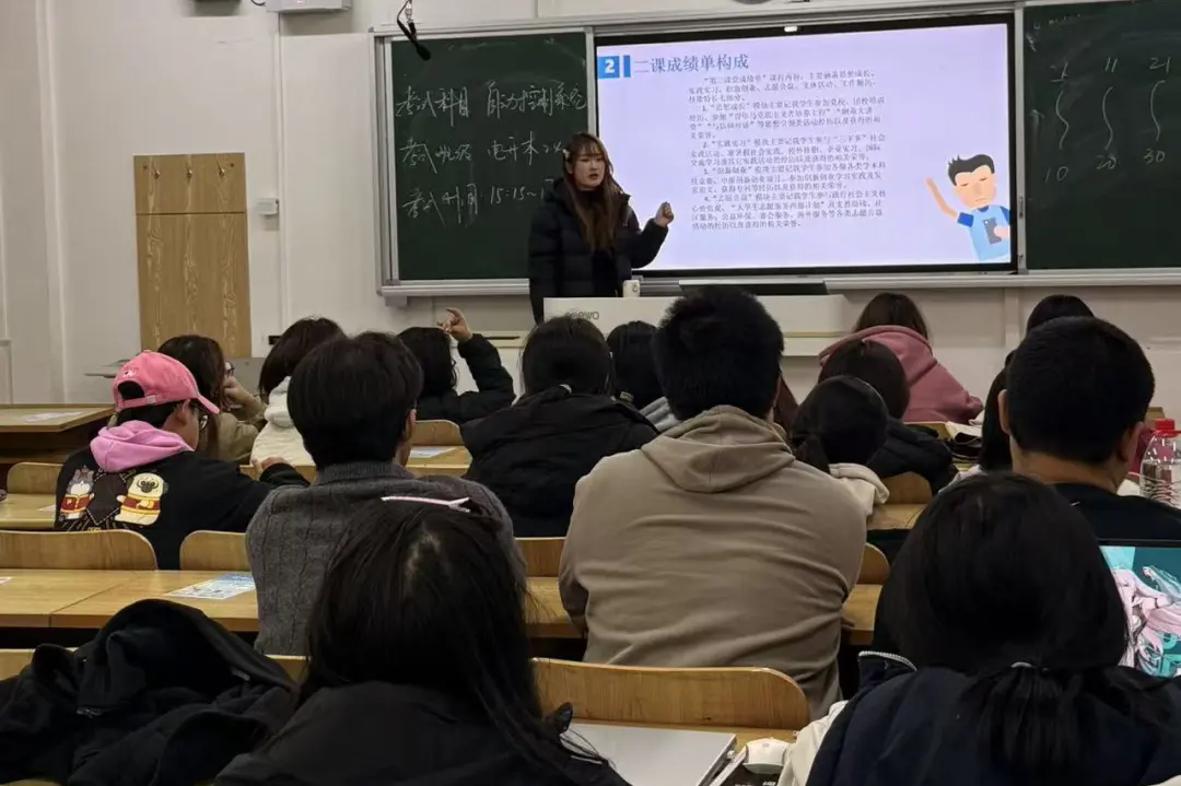 培训内容紧扣新生实际需求,系统讲解“第二课堂”的构成与“到梦空间”平台的核心功能。第一项内容由分团委副书记郑旭婷主讲,她着重阐述了实施“第二课堂成绩单”制度的重要意义,明确了其在学生综合测评、评奖评优乃至毕业求职中的作用,引导同学们从思想上重视第二课堂的学习与实践。