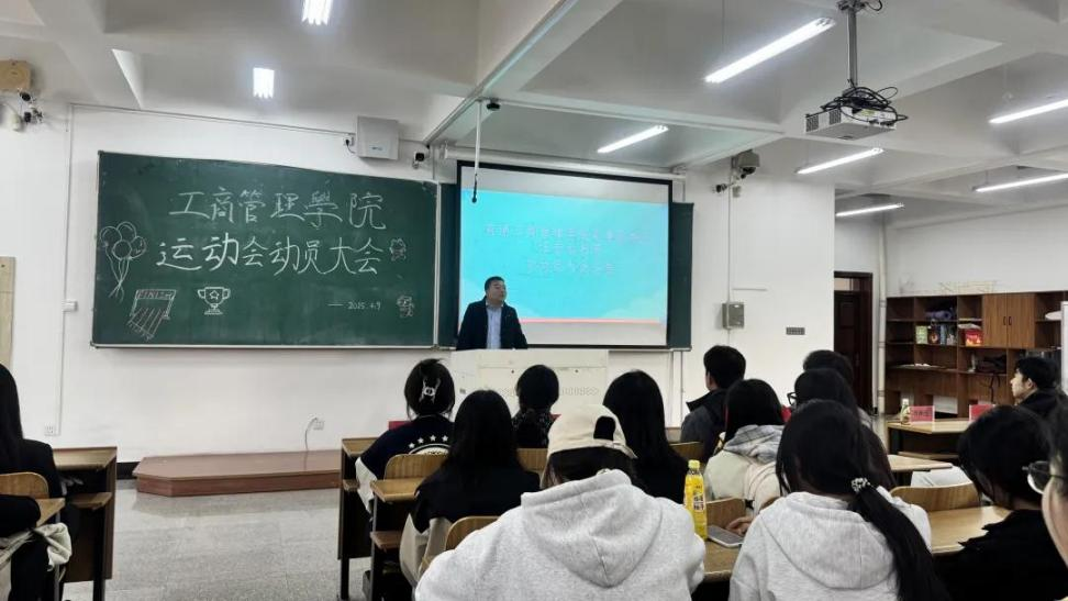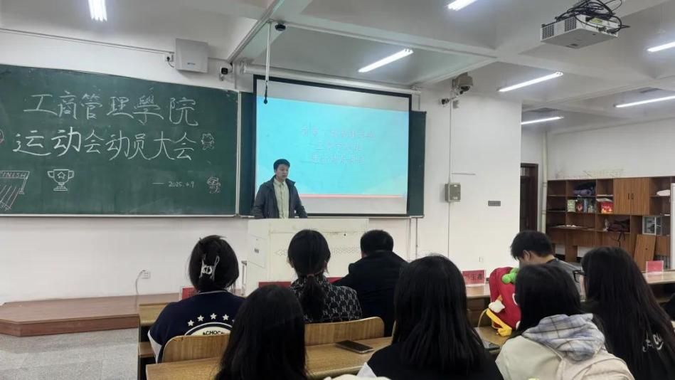 为激发学生参与热情,营造积极向上的体育氛围,4 月 9 日下午,九游在线官网_九游(中国)工商管 理学院在明德楼 D308 召开校运会动员大会。学院党委副书记汪若水、2024 级辅导员王晨宇 及学生代表出席会议,共同为即将到来的校运会加油鼓劲,倡导以拼搏精神书写青春篇章。