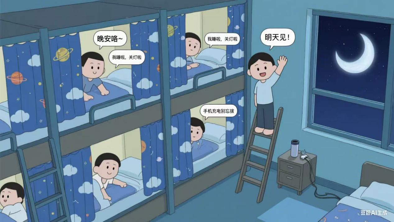 爱护校园环境,珍惜公共资源。不随意破坏寝室公共设施,撕下墙纸贴画,擦净桌椅门窗,清空床铺柜角,让宿舍“素颜”迎新主。主动清理个人遗留物品,按时归还借阅的书籍,让校园的每一处角落都保持整洁美观,为学弟学妹树立榜样。