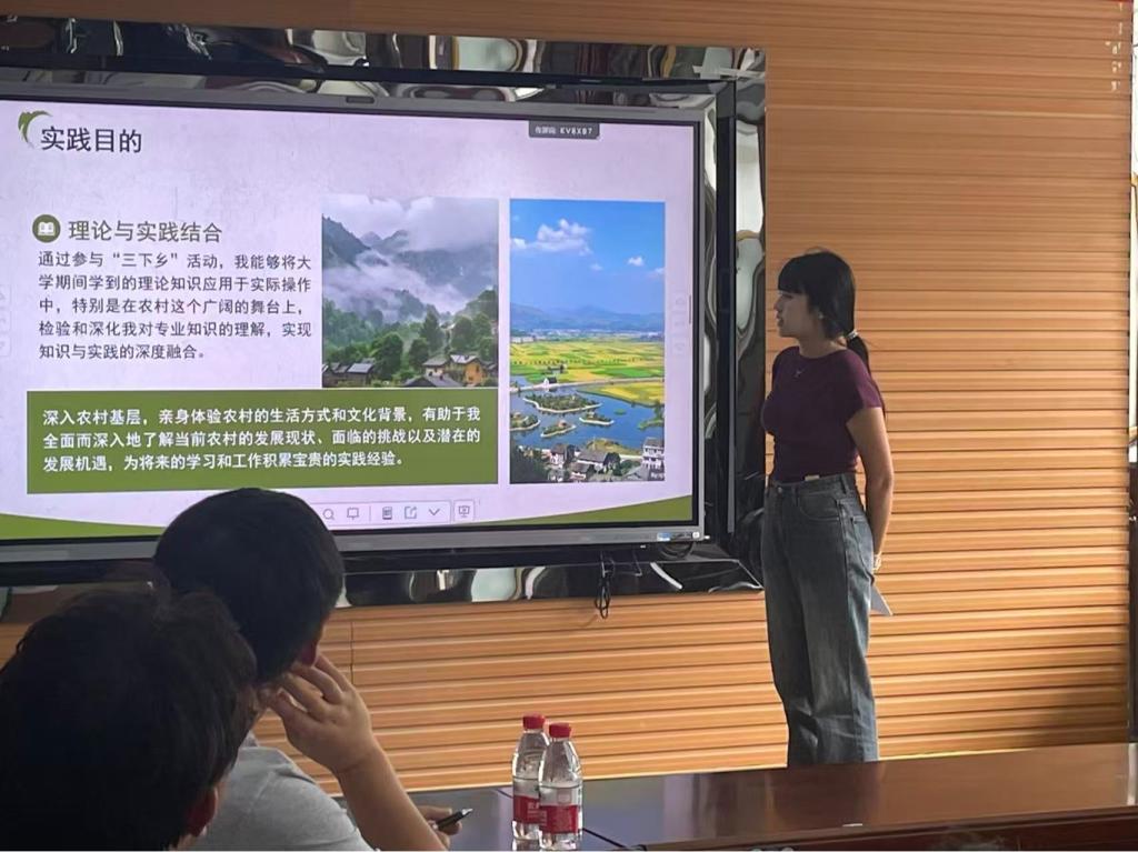 答辩会现场,来自不同专业的多支实践团队依次对成果进行展示。队员们借助逻辑清晰的陈述、图文并茂的PPT以及丰富的现场影像,不仅讲述了自身的成长与收获,还向评委和观众们全面呈现了深入乡村开展实践活动的宝贵经历与深刻体悟。