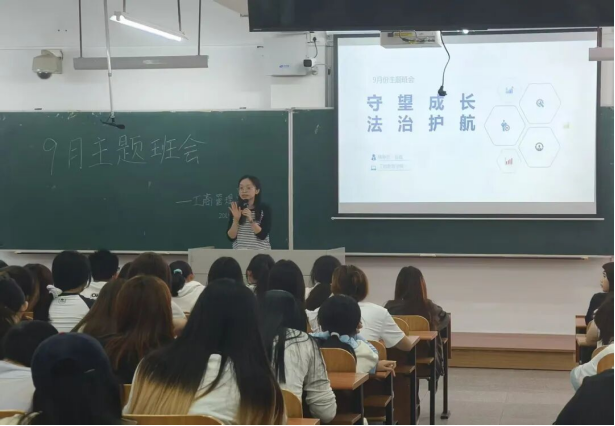 聚焦学生现实需求,本主题班会注重实践性与警示性。辅导员紧密结合“校园贷”、网络诈骗等发生在大学生身边的典型案例,深入剖析其违法本质、严重后果与关键防范要点。这种“以案释法”的生动形式,使学生们深刻认识到法治并非遥远的概念,而是保障日常学习生活的重要准则,有效增强了大家的法治观念、风险辨别能力和自我保护意识,为学子们在法治轨道上健康成长筑牢了坚实的思想防线。