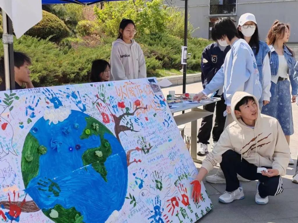 4月22日,管理学院组织本院青年志愿者协会在博雅广场开展“‘以废作画,全绿以赴’共同绘画我们的地球”世界地球日主题活动,为引导大学生树立“尊重自然、顺应自然、保护自然”的生态文明理念,呼吁更多人参与到“珍爱地球,人与自然和谐共生”的行动中。