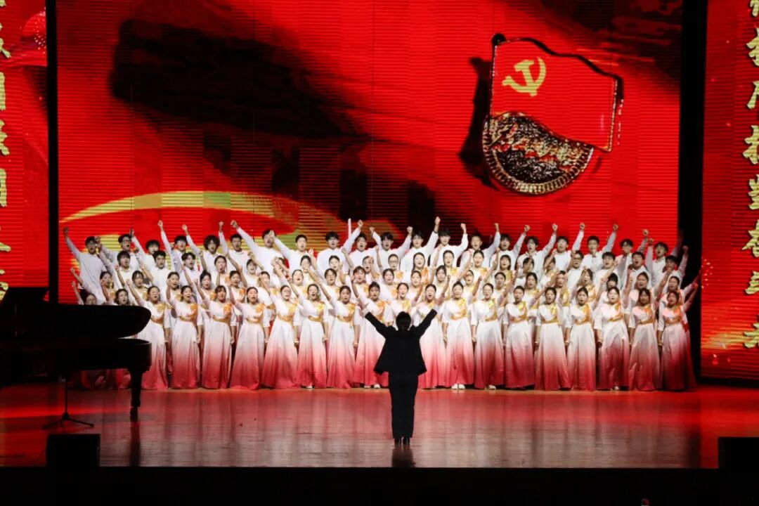 “唱支山歌给党听,我把党来比母亲……”舞台上,管院学子们精神抖擞,情感真挚。他们以悠扬深情的旋律开场,忆苦思甜;在激昂有力的高潮部分,迸发出新时代青年对党的无限热爱与坚定追随。整齐划一的声部、层次丰富的情感、匠心独具的编排,配合庄重大气的舞台表现,不仅精准诠释了经典红歌的精神内核,更融入了当代青年的理解与敬意,让这首历久弥新的作品在舞台上焕发出新的时代光彩。