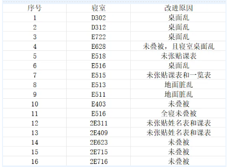 内务需改进的寝室