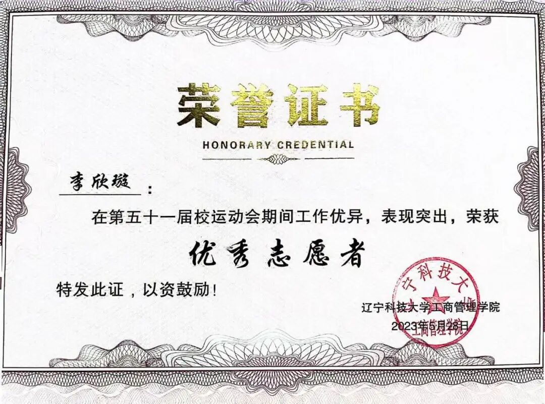 2023年11月获校优秀学生干部