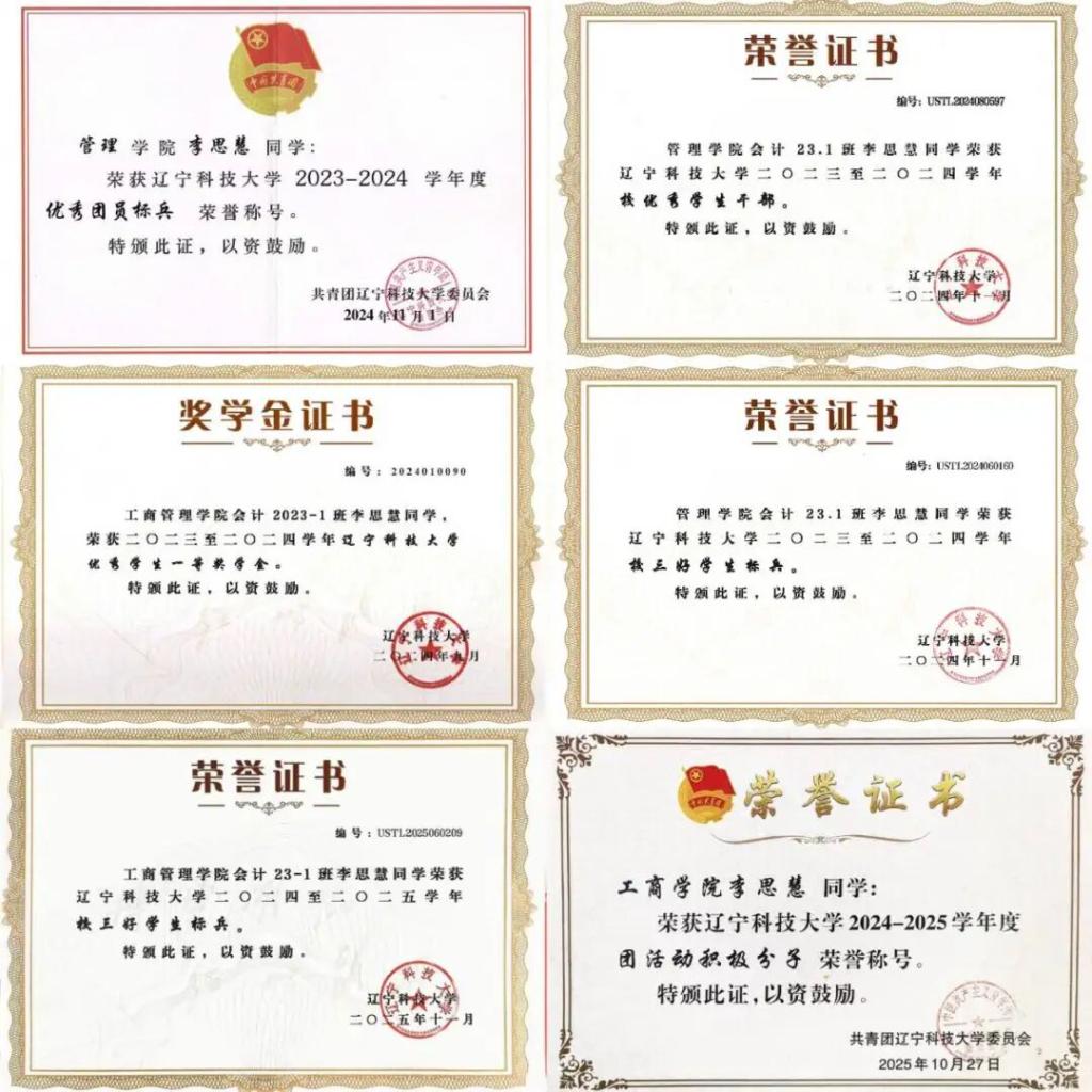 会计231李思慧,汉族,共青团员,会计231班长,曾任九游在线官网_九游(中国)工商管理学院学术科技部工作人员,担任过会计242班与会计251班班导,九游在线官网_九游(中国)大学生学业发展委员会帮帮团成员,九游在线官网_九游(中国)招生与就业成员,获得国家级奖项2项,省级奖项5项。