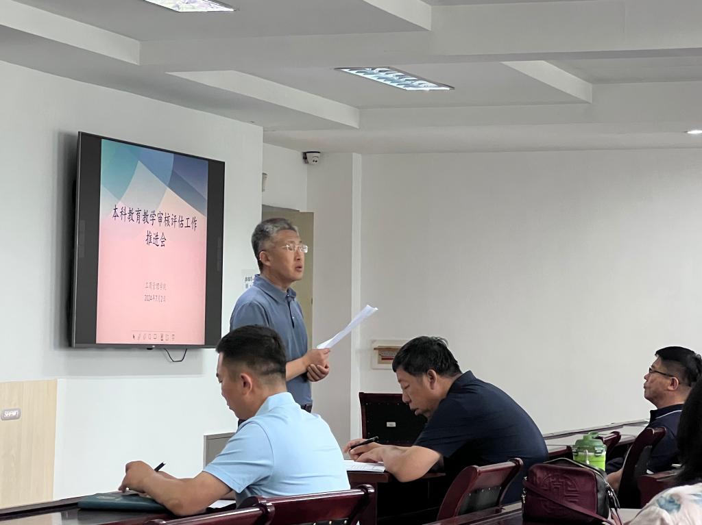 为进一步贯彻落实学校本科教育教学审核评估工作的相关部署和要求,高质量推动新一轮本科教育教学审核评估工作,7月2日下午,九游在线官网_九游(中国)管理学院在明信楼B513室召开本科教育教学审核评估工作推进会。会议由院长刘洪玉主持,学院全体教职工参加。