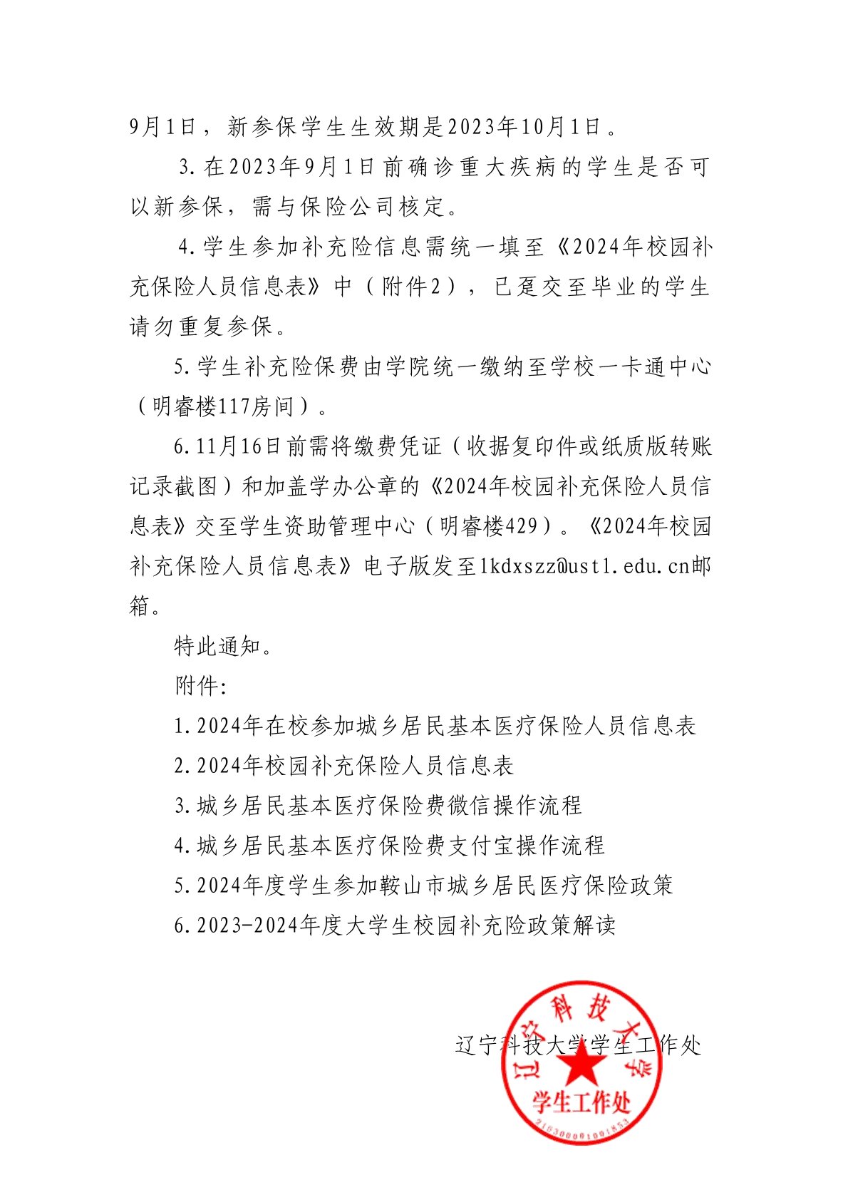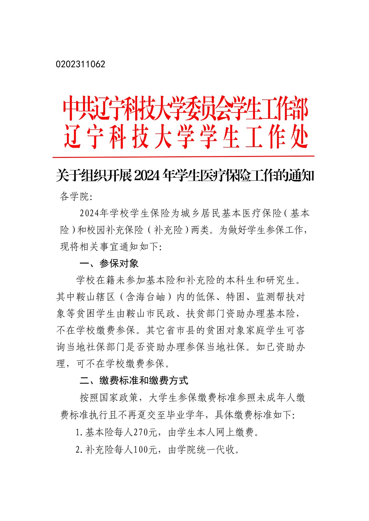 关于组织开展2024年学生医疗保险工作的通知