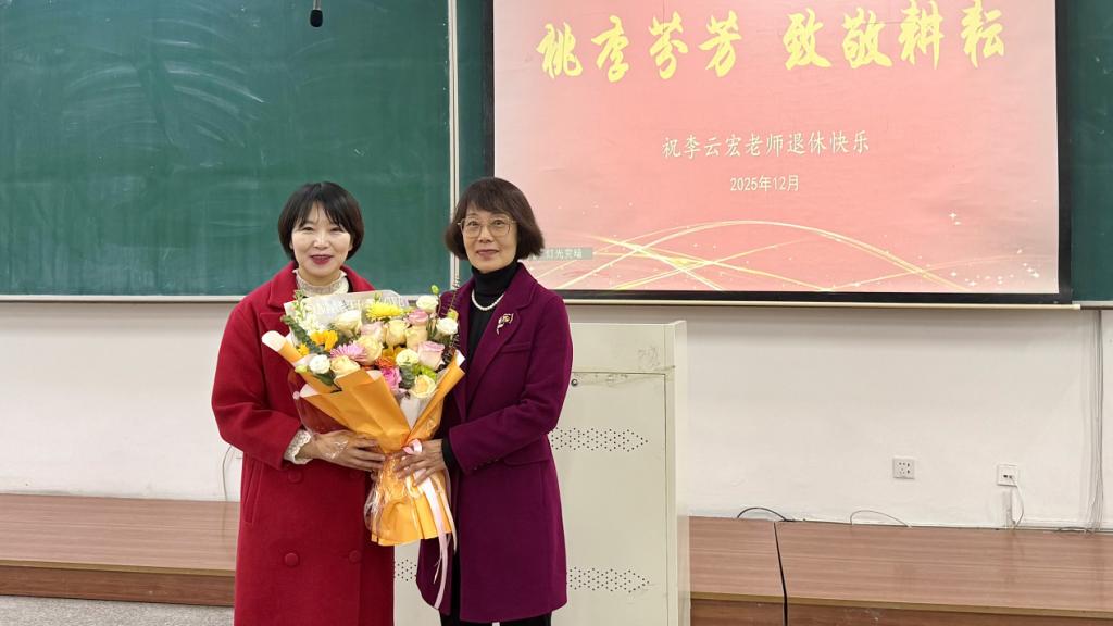 李云宏老师随后发表荣休感言。她深情追忆点滴难忘时光——从青涩站上讲台到从容深耕教学,从一字一句批改作业到一年一年见证学生成长。她坦言,教师生涯中最欣慰的收获,是看到一批批学子成为专业扎实、品行端正的社会栋梁。她寄语学院继续坚守育人初心,勉励青年教师“心中有爱、手中有术”,鼓励同学们“立大志、明大德、成大才”,并真诚表示自己虽离讲台,心仍系学院,愿以另一种方式继续关注和支持学校发展。