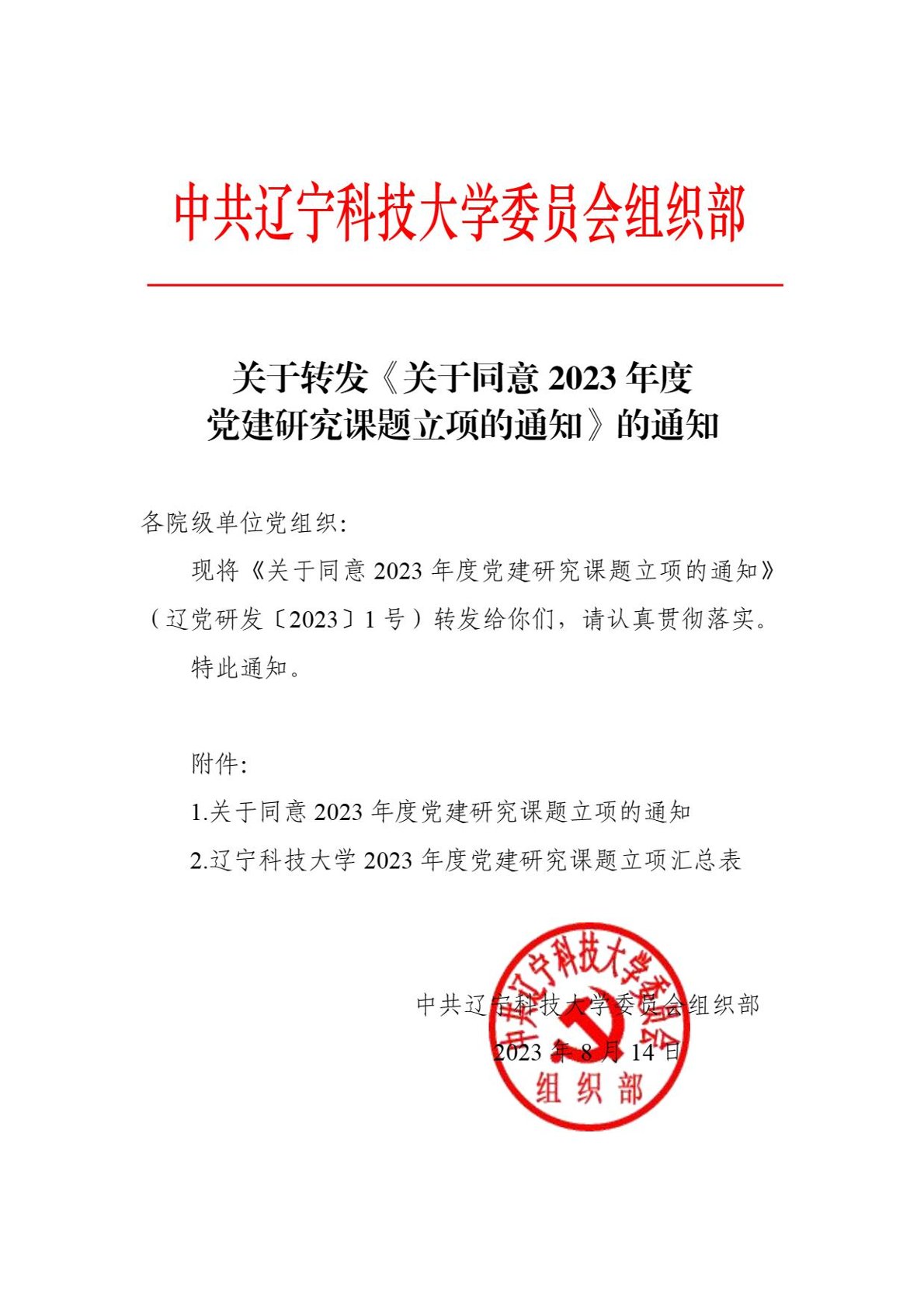 关于转发《关于同意2023年度党建研究课题立项的通知》的通知