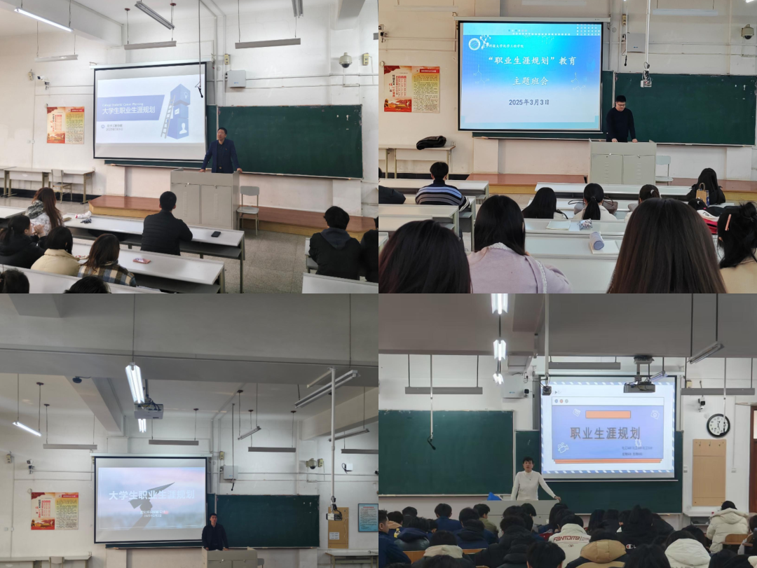 在“职业生涯规划”主题班会中,辅导员通过案例分析、互动讨论等方式,帮助学生树立正确的成才观和就业观。此外,辅导员结合行业发展趋势,指导学生合理调整职业发展目标,提升就业竞争力。学生们表示,通过班会不仅明确了学习方向,还对未来职业路径有了更清晰的规划。
