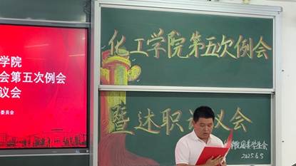 6月5日,化学工程学院于博学楼C304召开第十九届团委学生会第五次例会暨学生骨干述职评议会。化工学院团委书记李世新及第十九届团委学生会全体成员悉数出席,学生会执行主席马卫明主持会议。