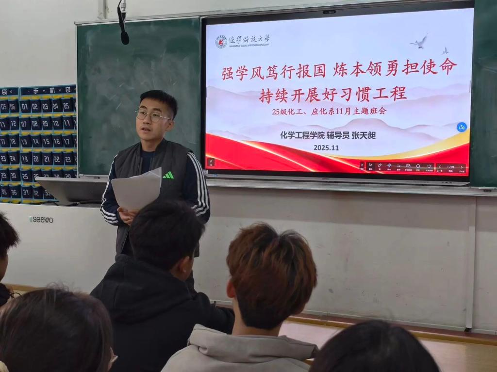 为积极响应学校号召,化学工程学院于11月份围绕“强学风笃行报国,炼本领勇担使命”的主题开展班会,旨在常态化推进学生思想教育与日常管理工作,切实提升育人实效。