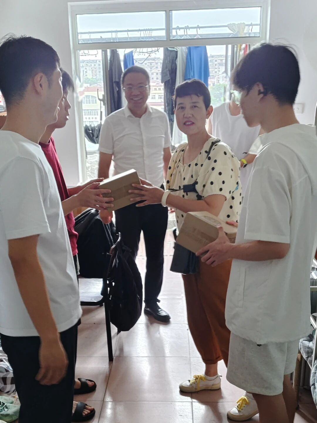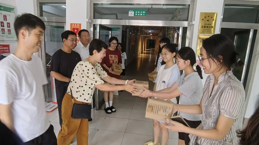 学院的领导老师们为留校考研的学生们送去了防暑物资。同时,学院老师们表示,学校和学院会全力保障暑期留校学生的学习生活需求,畅通沟通渠道,及时解决学生遇到的问题,为他们营造安全、舒适的环境,助力学生顺利完成暑期学习和科研任务。