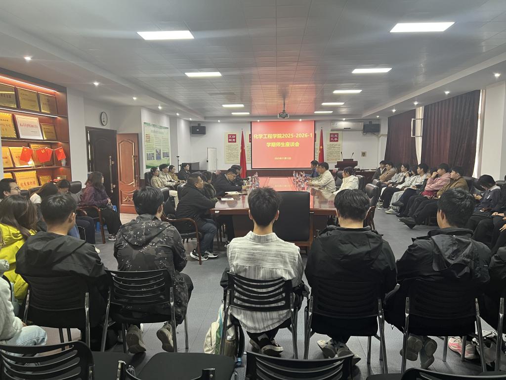 为深入落实学校“1+3+2”教育教学改革,进一步推进教风学风建设,11月12日中午,化学工程学院在博观楼B325组织召开了2025-2026学年度第一学期师生座谈会。会议由朱亚明副院长主持,学院相关领导及各系(实验中心)主任、副主任、各班级学生代表参加。