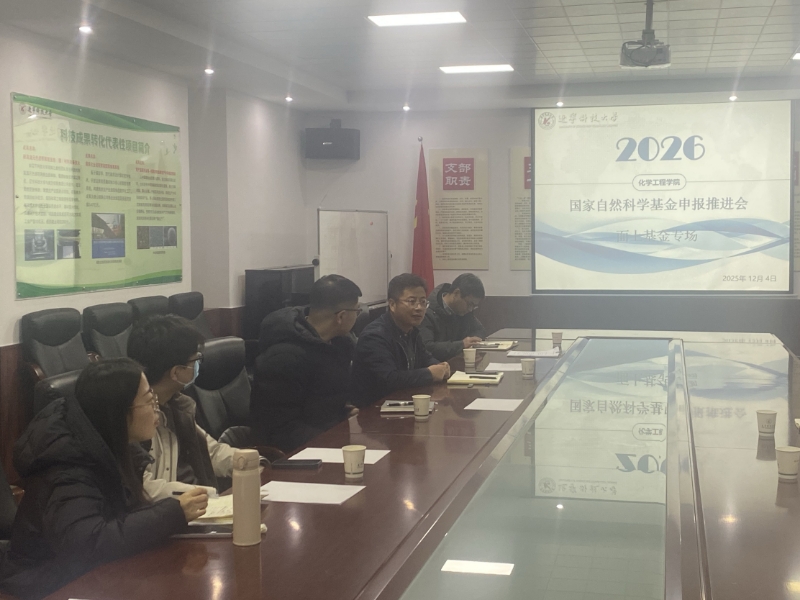 12月4日上午,化学工程学院在B325会议室组织召开2026年度国家自然科学基金面上项目申报工作专项推进会。会议由副院长孟庆涛主持,学院相关领导及拟申报2026年度面上项目的教师参加会议。