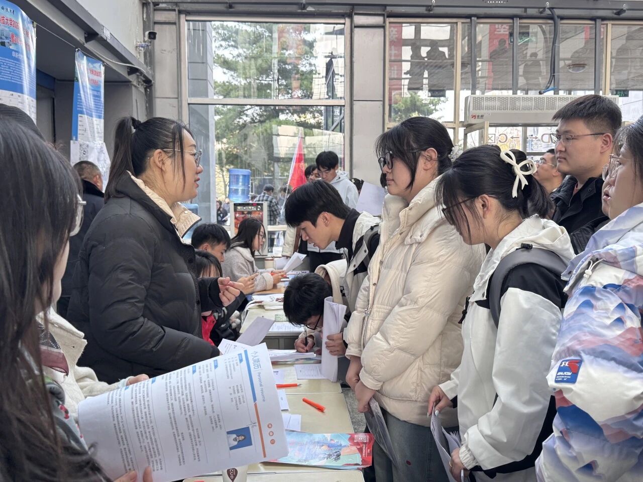 双选会现场氛围热烈,化工学院师生踊跃参与,与企业深入交流,精准对接用人需求,化工学院毕业生朝气蓬勃、准备充分,握着简历在各企业展位间往来穿梭,主动与招聘代表洽谈交流,展现出从容自信、专业务实的精神面貌。各大企业全心投入,细致讲解岗位要求与发展前景,竭力和学子达成精准的人才匹配、实现合作共赢。