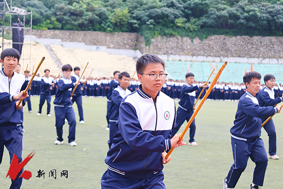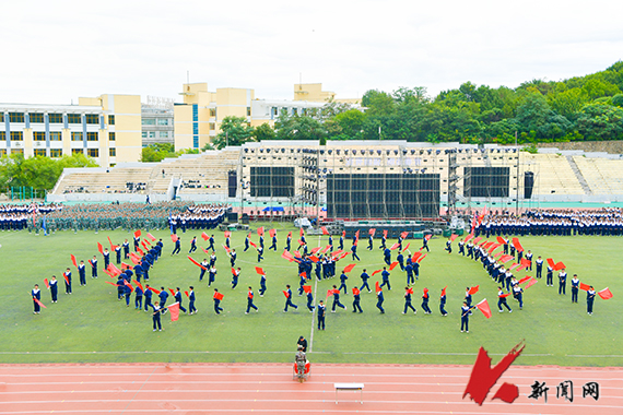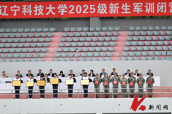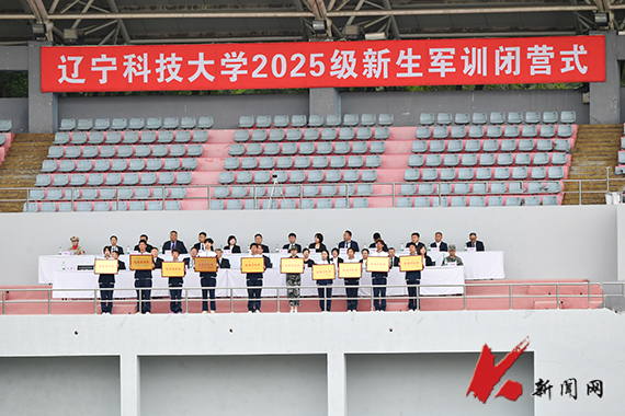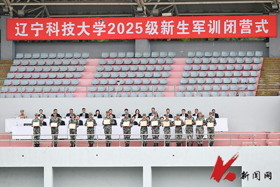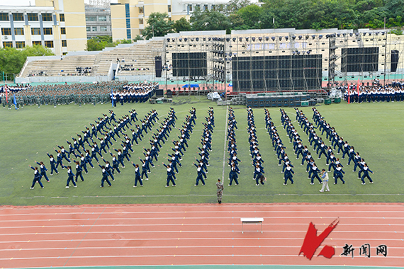2025级新生军训闭营式在学校主体育场举行。校领导、军训团成员、新生辅导员和全体2025级新生参加闭营式。