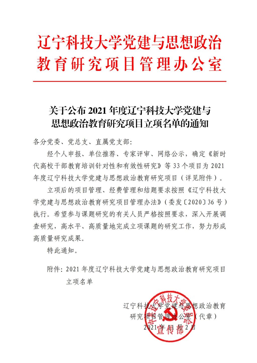 关于公布2021年度九游在线官网_九游(中国)党建与思想政治教育研究项目立项名单的通知