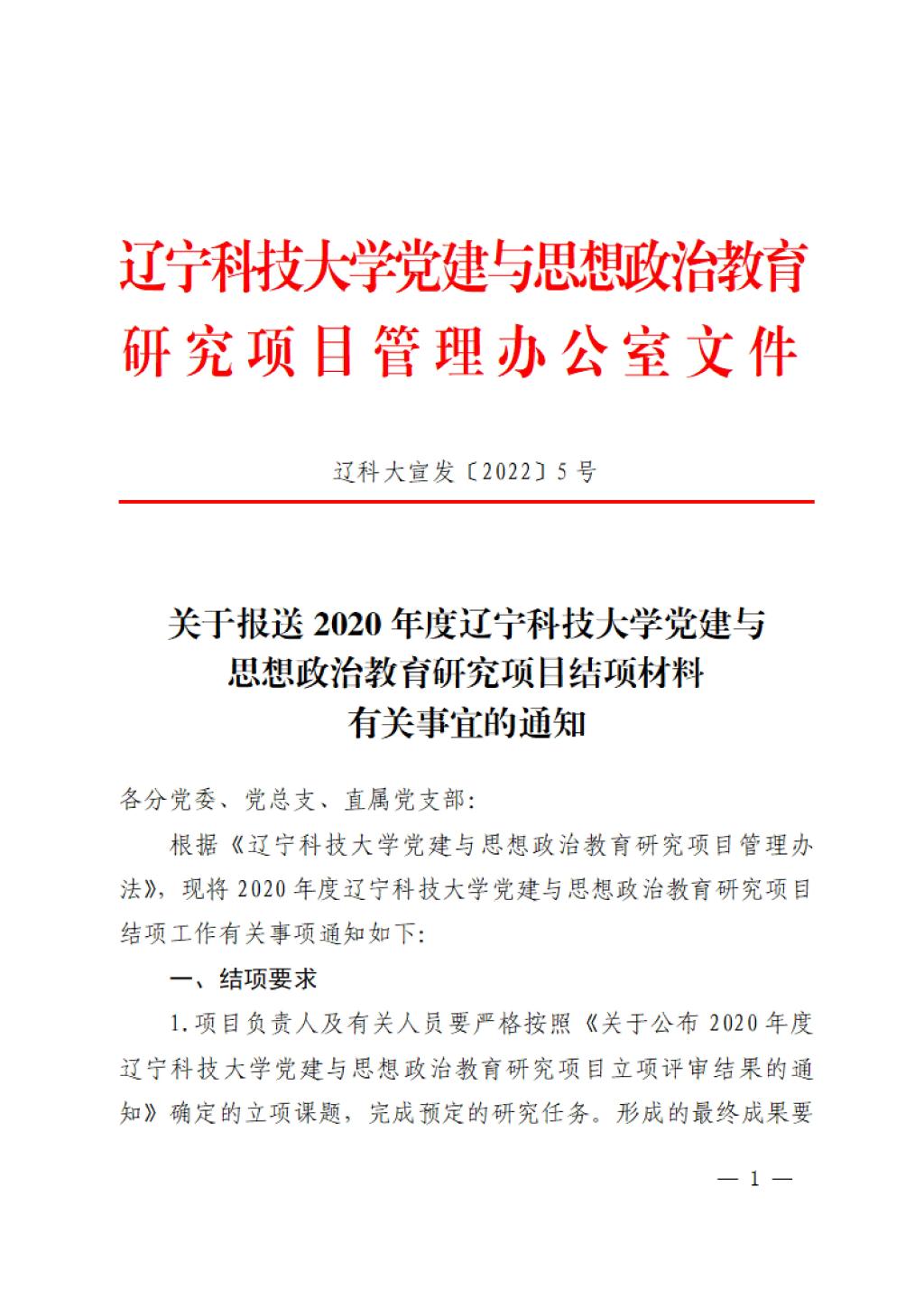 关于报送 2020年度九游在线官网_九游(中国)党建与思想政治教育研究项目结项材料有关事宜的通知.pdf