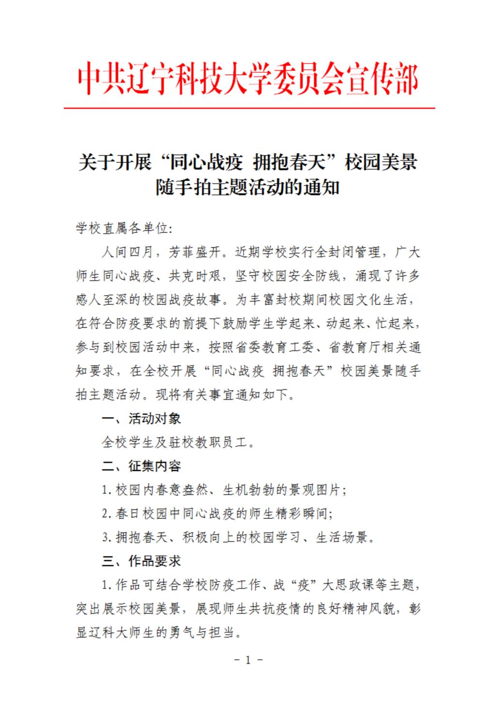 关于开展“同心战疫 拥抱春天”校园美景随手拍主题活动的通知